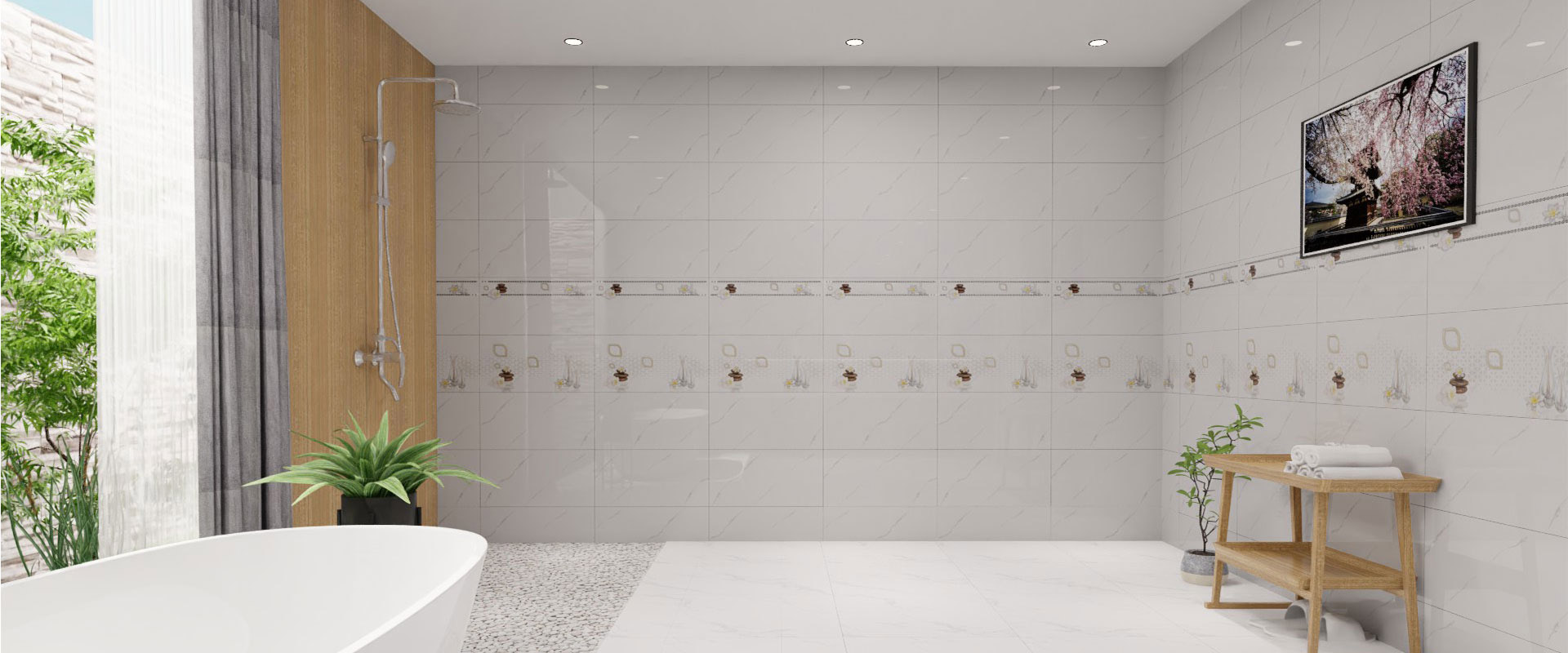 Gạch Lujo Thạch Bàn LGB-0287 Bề Mặt Bóng kính vân đá trắng khói, sản xuất Gạch Thạch Bàn, Kích thước: 30×60, 60X60cm Gạch Granite siêu bóng.