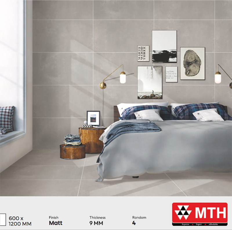 Gạch MTH Ấn Độ 3504 (600x1200mm) nhập khẩu bằng đá granite Có Bề mặt Matt mờ vân đá xi măng. 1 thùng đóng 2 viên = 1.44m², dầy 9mm, random 4 face…