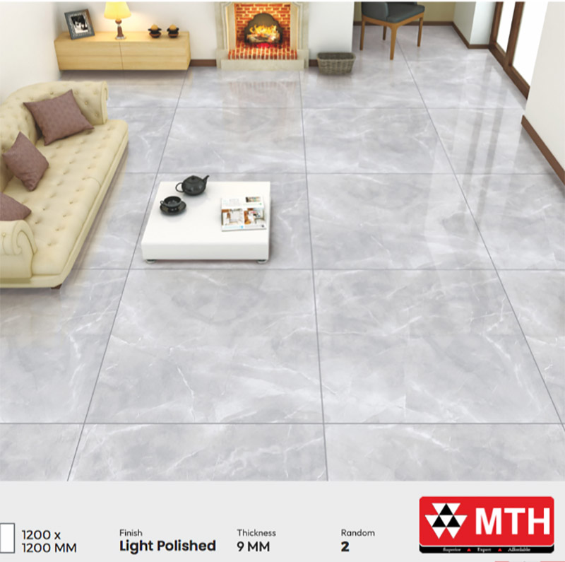 Gạch MTH India (Ấn Độ) 5105 (1200x1200mm) hiệu ứng Light polished Có Bề mặt Bóng kính vân đá tự nhiên. 1 thùng đóng 2 viên = 2m², dầy 9mm, random 3 face…