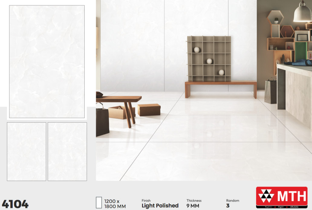 Gạch MTH Ấn Độ 4104 (1200x1800MM) nhập khẩu bằng đá granite Có Bề mặt Bóng kính vân đá tự nhiên. 1 thùng đóng 1 viên = 2,16m², dầy 9mm, random 3 face…