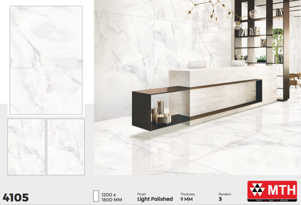 Gạch MTH Ấn Độ 4105 (1200x1800MM) nhập khẩu bằng đá granite Có Bề mặt Bóng kính vân đá tự nhiên. 1 thùng đóng 1 viên = 2,16m², dầy 9mm, random 3 face…