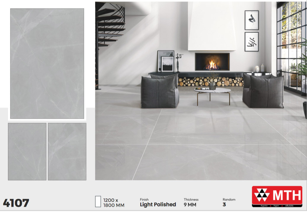 Gạch MTH Ấn Độ 4107 (1200x1800MM) nhập khẩu bằng đá granite Có Bề mặt Bóng kính vân đá tự nhiên. 1 thùng đóng 1 viên = 2,16m², dầy 9mm, random 3 face…