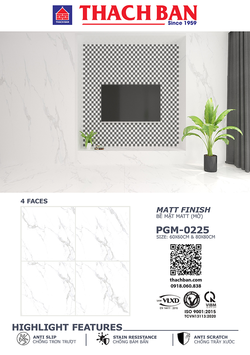 Gạch Porugia Thạch Bàn PGM 0225 Bề Mặt Matt Mờ Nhà sản xuất Gạch Thạch Bàn, Kích thước: 80×80, 60X60, 30x60cm Loại Gạch Granite Porugia cao cấp.