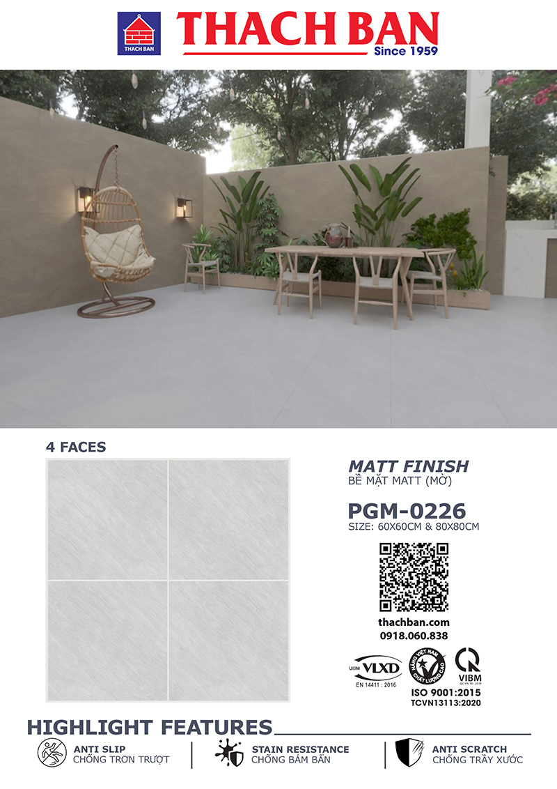 Gạch Porugia Thạch Bàn PGM 0226 Bề Mặt Matt Mờ Nhà sản xuất Gạch Thạch Bàn, Kích thước: 80×80, 60X60, 30x60cm Loại Gạch Granite Porugia cao cấp.