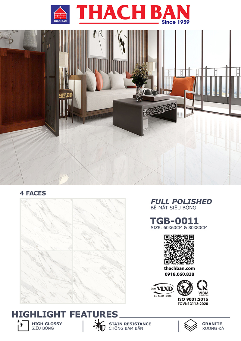 Gạch Tbgres Thạch Bàn TGB-0011 Bề Mặt Bóng kính vân khói, Nhà sản xuất Gạch Thạch Bàn, Kích thước: 80×80,60X60cm Loại Gạch Granite siêu bóng, chống bám bẩn.