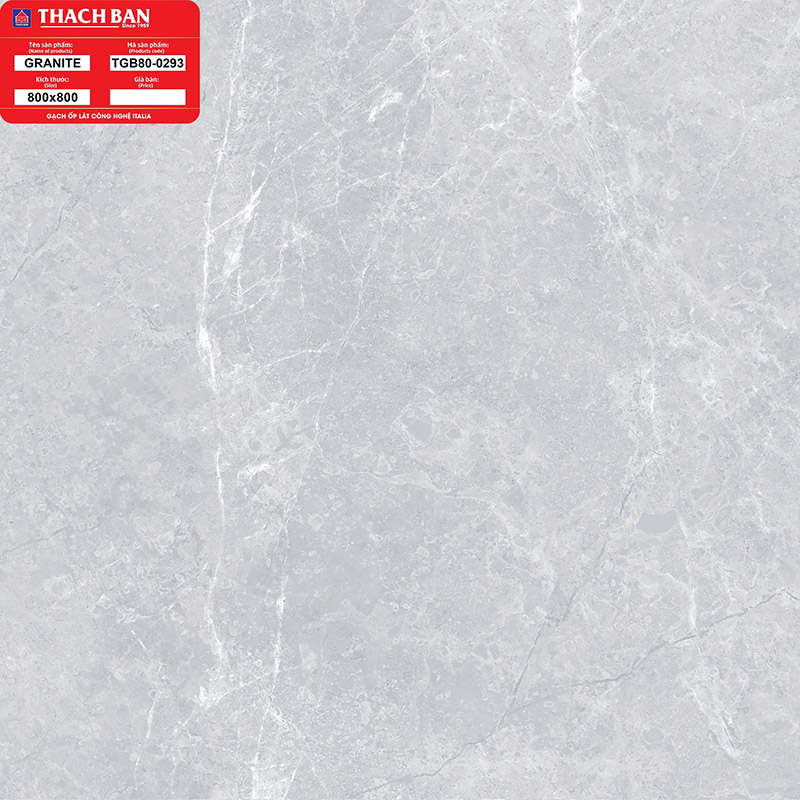 Gạch Tbgres Thạch Bàn TGB-0293 Bề Mặt Bóng kính vân đá tông xám nhạt, sản xuất Gạch Thạch Bàn, Kích thước: 80×80, 60X60cm Gạch Granite siêu bóng.