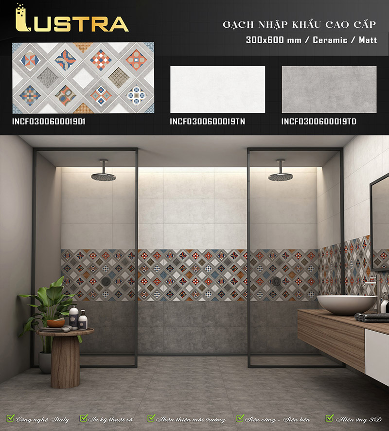 Gạch Lustra INCF0300600019D1 (300x600mm) Xương Ceramic Matt / Glossy, công nghệ italy in kỹ thuật số dùng ốp tường, siêu cứng và bên, hiệu ứng 3D…