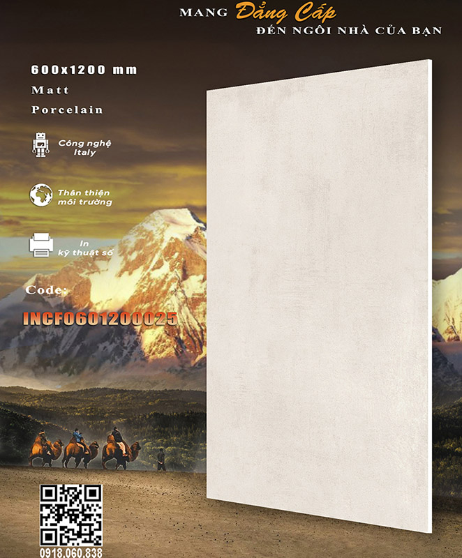 Gạch Lustra INCF0601200025 (60x120CM) mặt MATT vân ĐÁ, dùng Lát nền, ốp tường. Xương gạch Porcelain có độ hút nước rất thấp (nhỏ hơn 0.5%), dầy 9,4mm