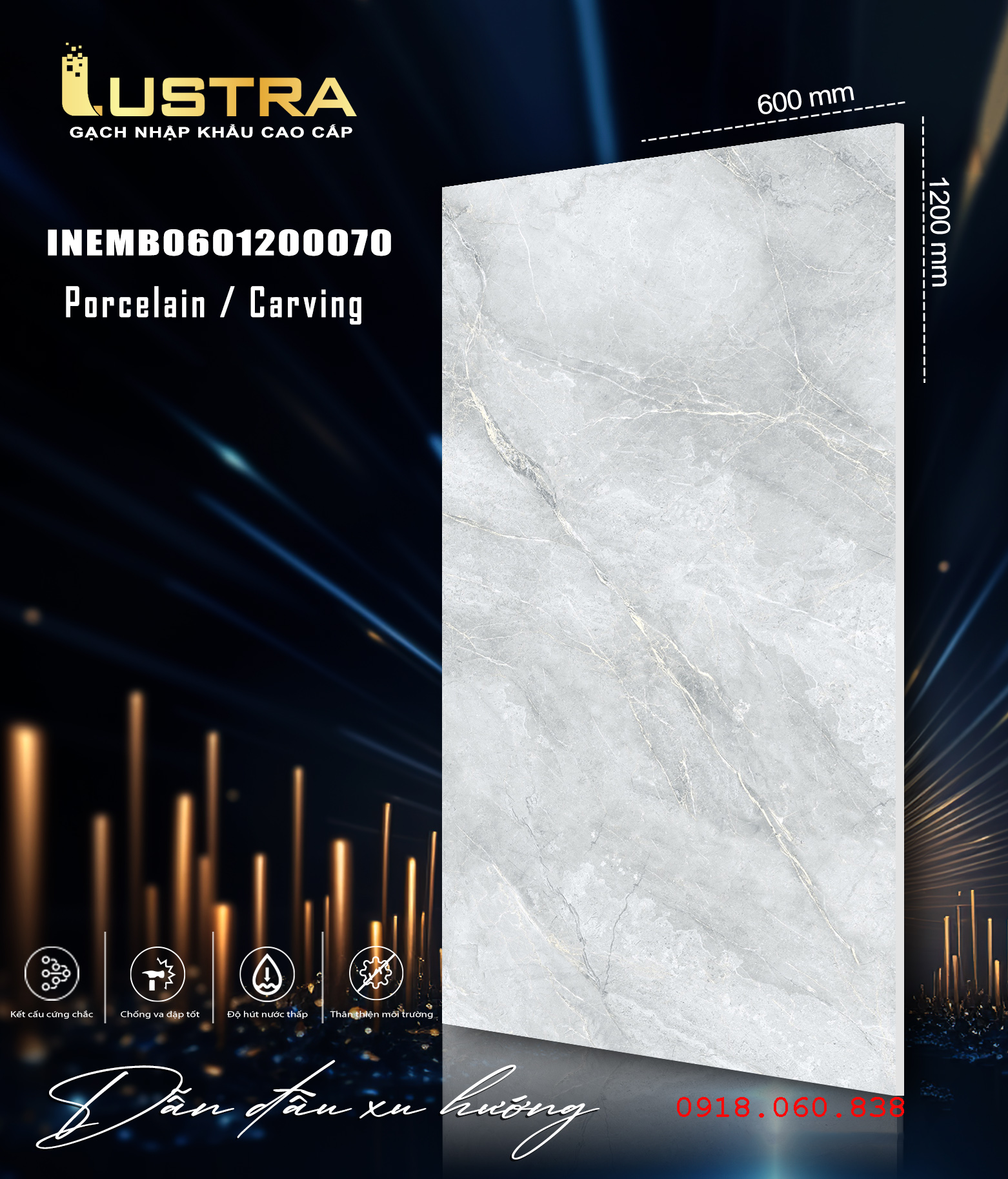 Gạch Lustra INEMB0601200070 (60x120CM) bề mặt bóng Kính vân đá, dùng Lát nền, ốp tường. Xương gạch Porcelain có độ hút nước rất thấp (nhỏ hơn 0.5%)…